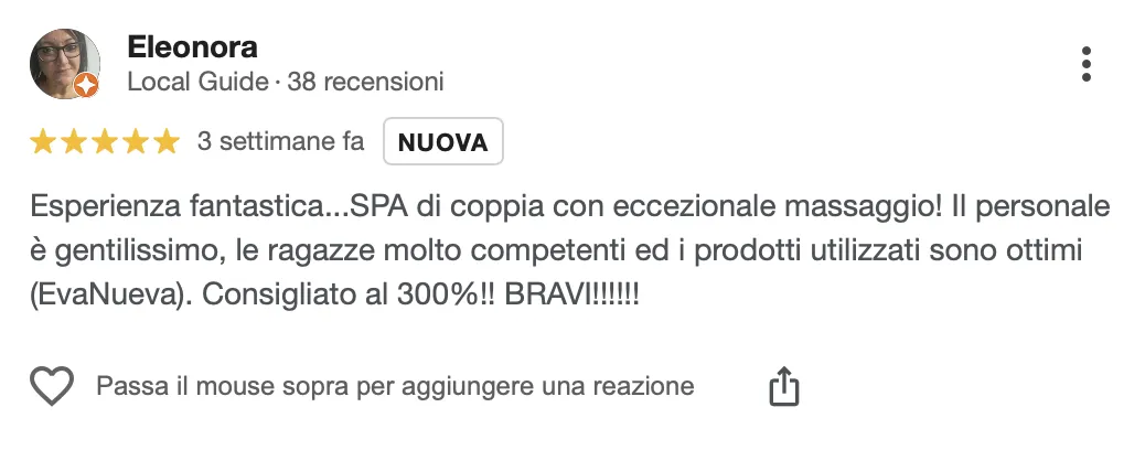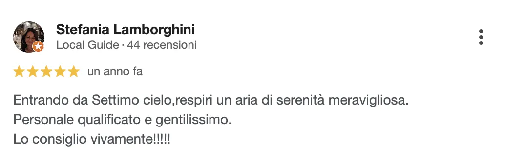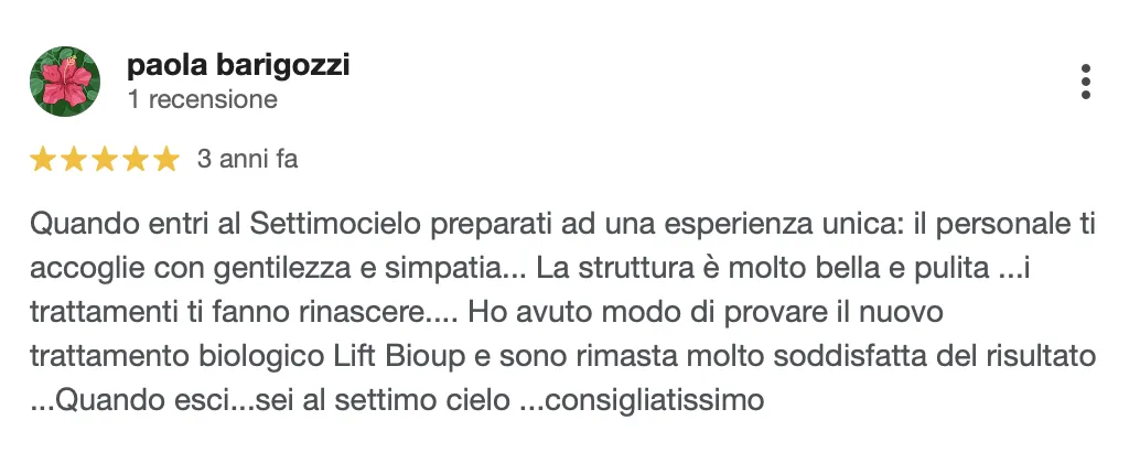 “I trattamenti ti fanno rinascere. Quando esci sei al settimo cielo. Consigliatissimo”