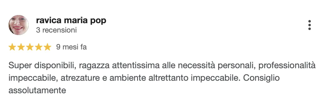“Professionalità, attrezzature e ambiente impeccabili. Consiglio assolutamente”